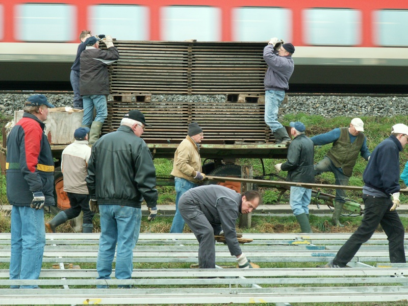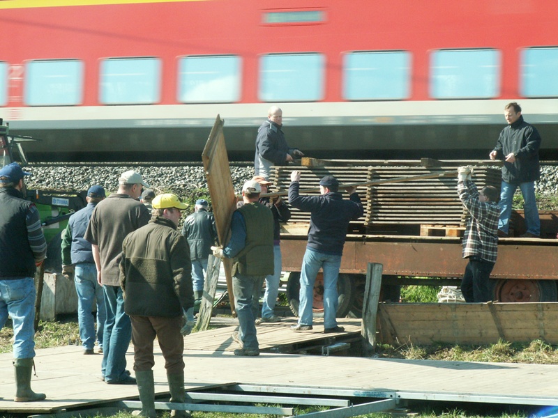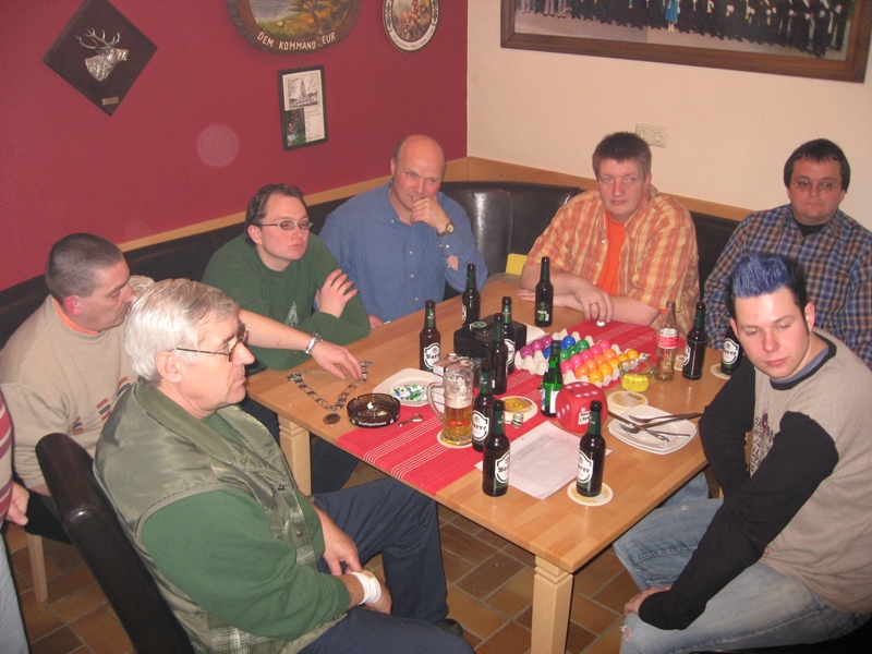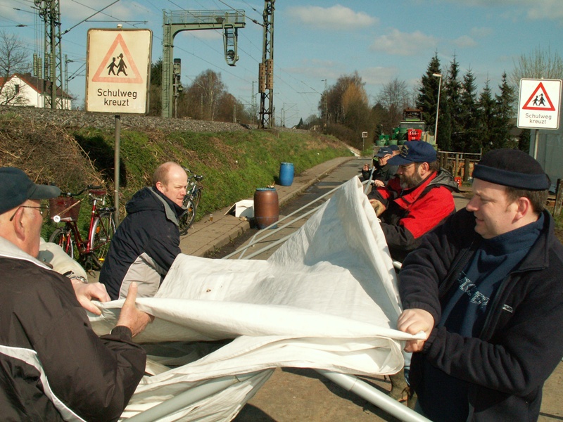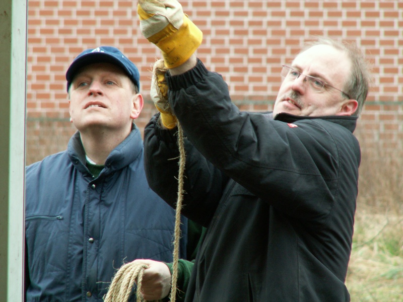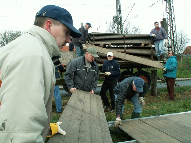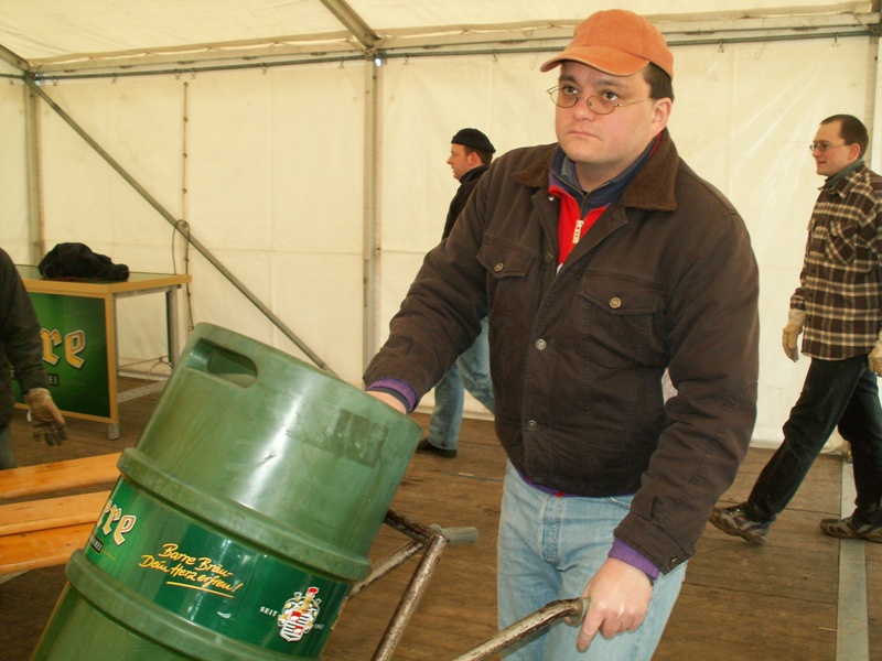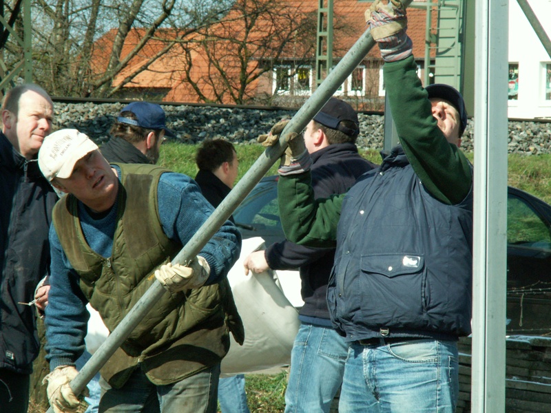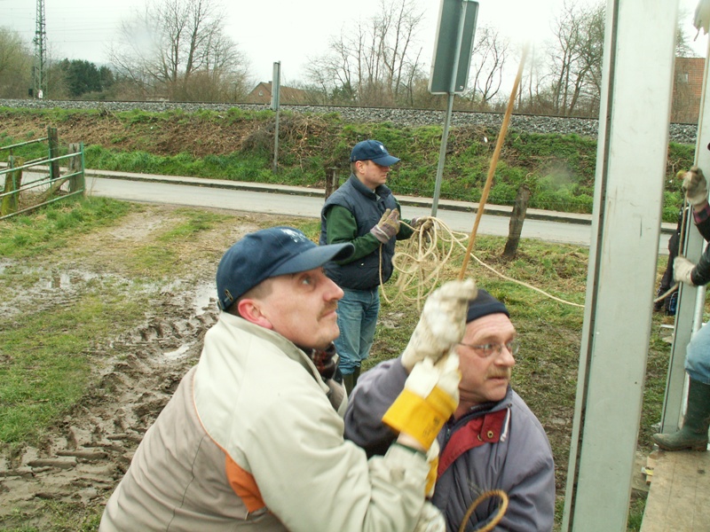 Am 22.03.2008 fand in diesem Jahr relativ früh das Osterfeuer statt. Dementsprechend war das Wetter noch winterlich. Während des Aufbauens fiel sogar Schnee, der auch liegen blieb. Beim Osterfeuer am Abend war denn auch der heiße Glühwein beliebter als das kalte Bier.