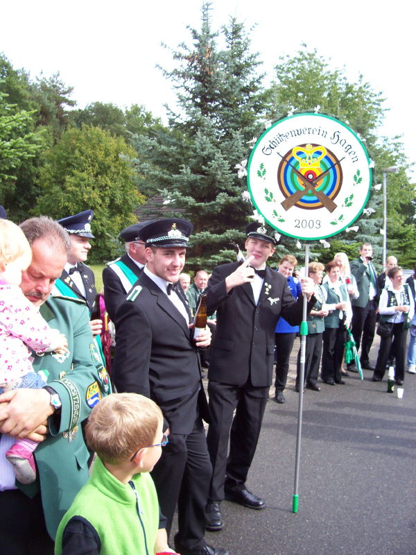 Am 13.09.2009 besuchten wir das Katerfrühstück unserer Schützenfreunde aus Hagen/Wunstorf mit anschließendem Marsch zum König, bei dem die Königsscheibe angebracht wurde.