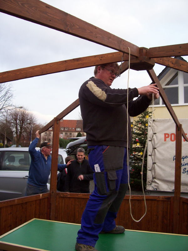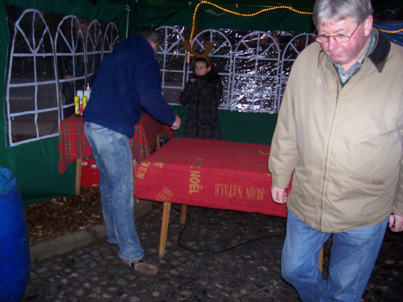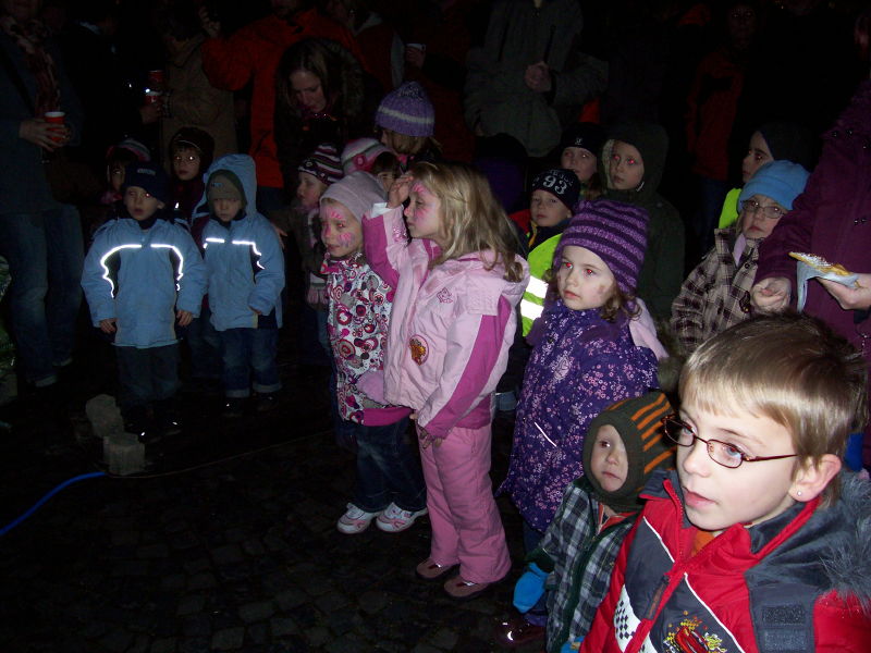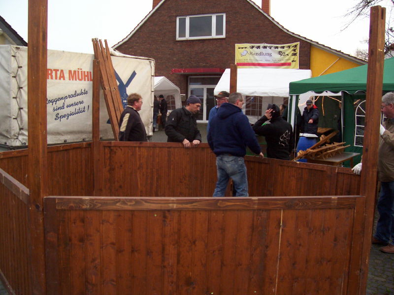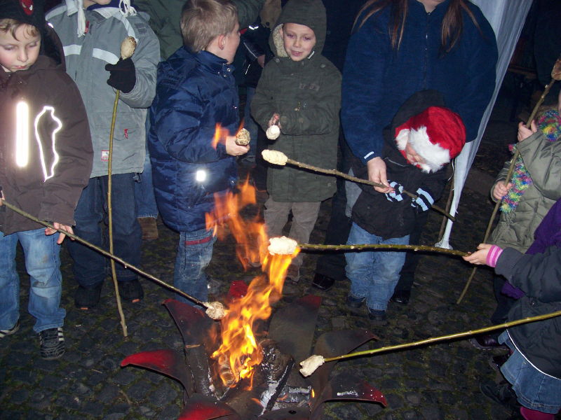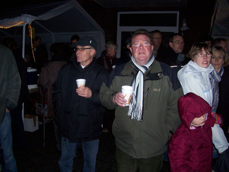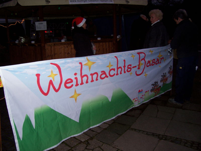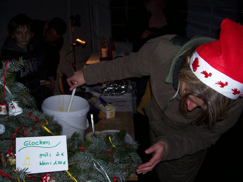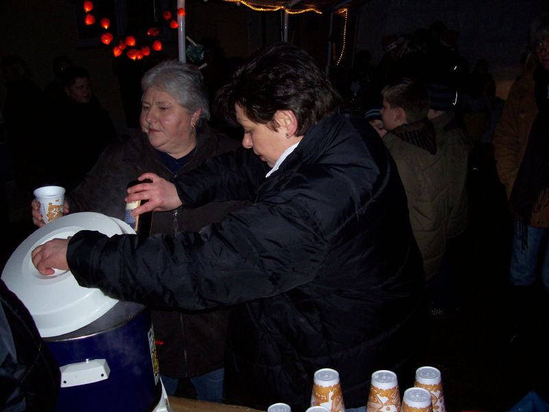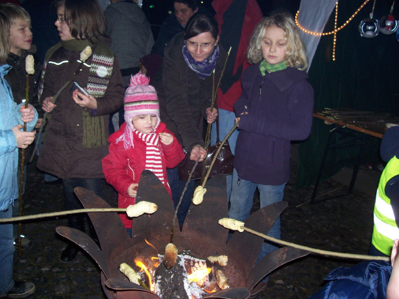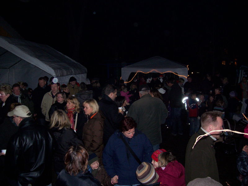 Am 04.12.2009 fand der 2. Weihnachtsbasar auf dem Dorfplatz statt. Da, wo früher die Friedenseiche stand und jetzt eine Blutbuche, wurden von verschiedenen Gruppen Stände aufgebaut. Das Wetter spielte dieses Jahr mit und der Platz war wieder dichtgedrängt. Nach einer gesanglichen Eröffnung durch den Kindergarten konnten sich die Kinder schminken lassen oder Stockbrot backen. Aber auch für die Erwachsenen gab es neben Bratwurst und Bier den Glühwein gegen die aufkommende Kälte: Es geht ja auf Weihnachten zu!
