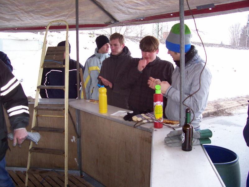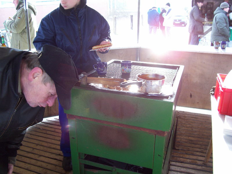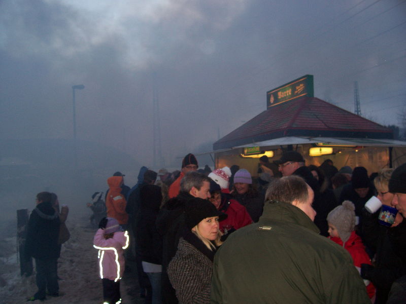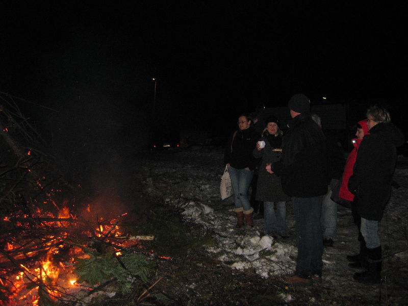Ab 16 Uhr wurde dann bei Bratwurst und Getränken auf Horstmanns Weide an der Bahn ein Winterfeuer in der Gemeinde Neesen bestaunt, das sich leider teilweise im „Nebel“ des Feuers versteckte.