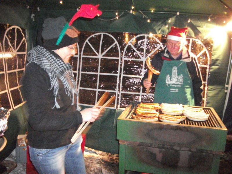 Am 03.12.2010 fand wieder ein Weihnachtsbasar auf dem Dorfplatz statt. Inzwischen schon traditionell war die 1. Kompanie für Bratwurst und Bier zuständig. Aber auch die Feuerkörbe wurden der Dorfgemeinschaft zur Verfügung gestellt.