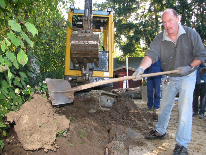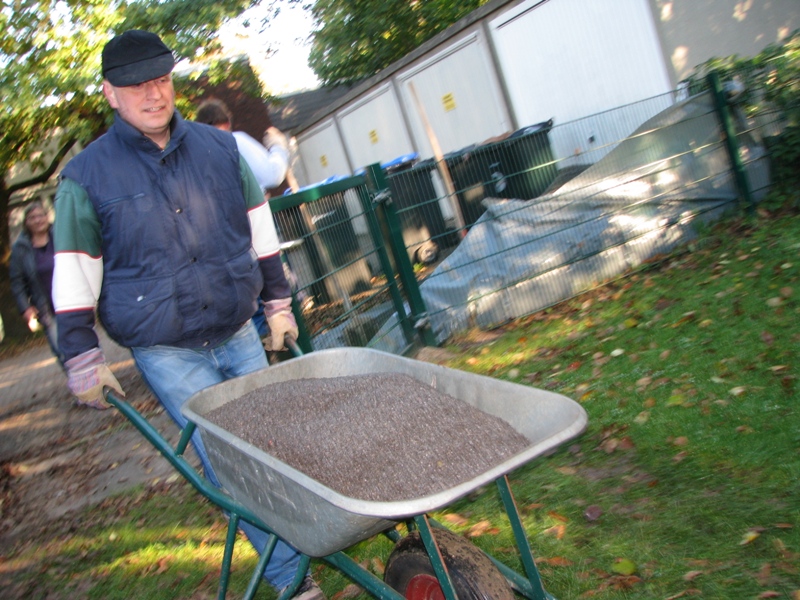 Am 15.10.2011 gab es einen Arbeitseinsatz in der AWO-Kita Neesen. Mit Schaufeln und Minibagger wurde die Sandkiste umgestaltet.