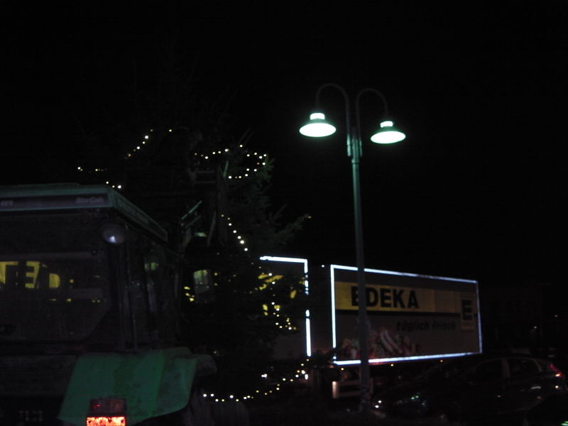 Und heute, einen Tag vor Nikolaus, hat dann der Orkan „Xaver“ zugeschlagen: Der Weihnachtsbaum wurde von ihm glatt abgebrochen!