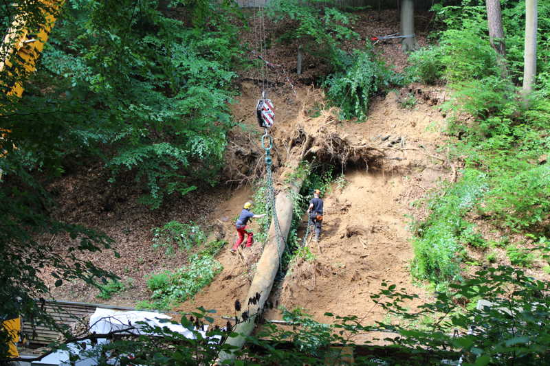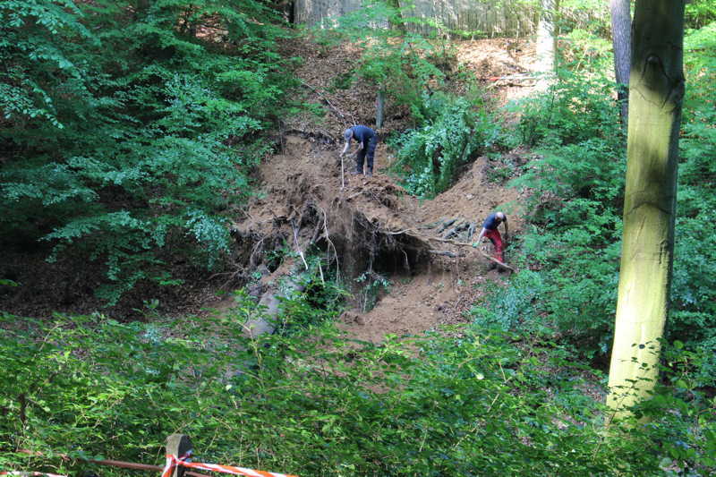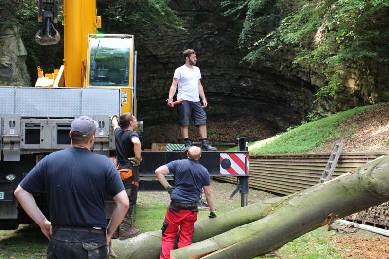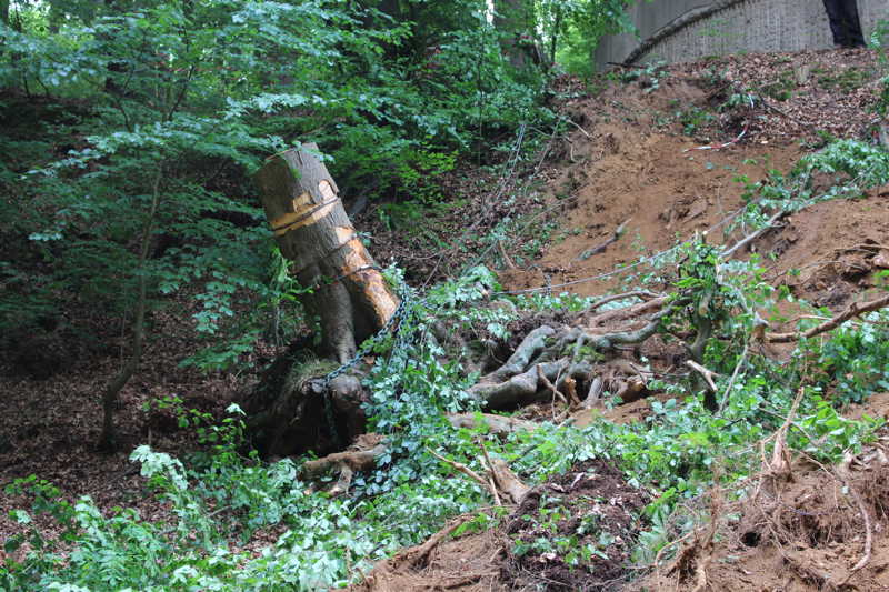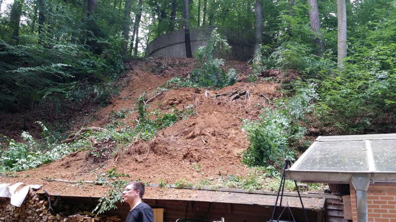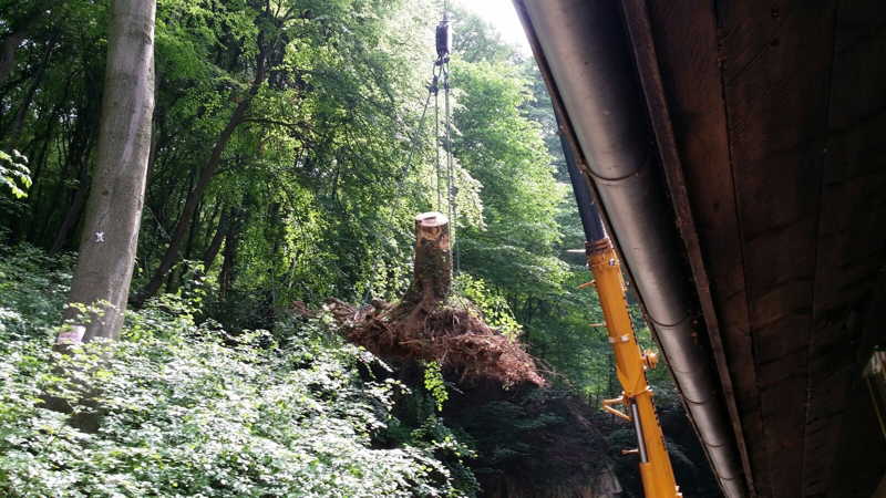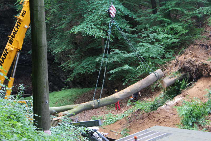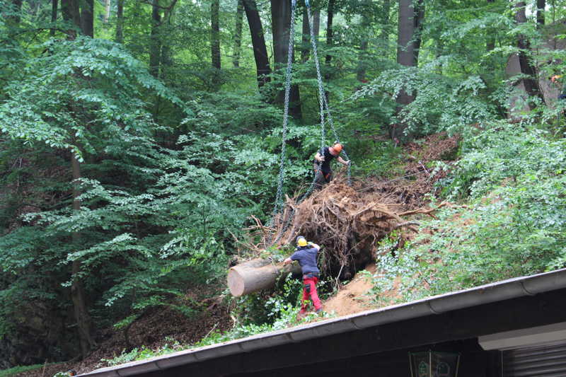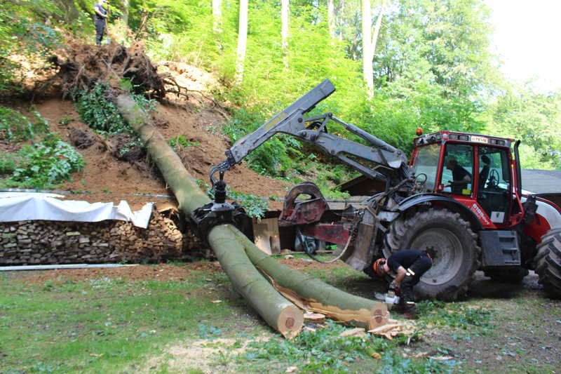 Am 27.05.2016 hatten wir großes Glück, dass niemand verletzt wurde. Kurz vor unserer Versammlung fiel oberhalb des Schießkanals eine große Buche quer über den Platz.