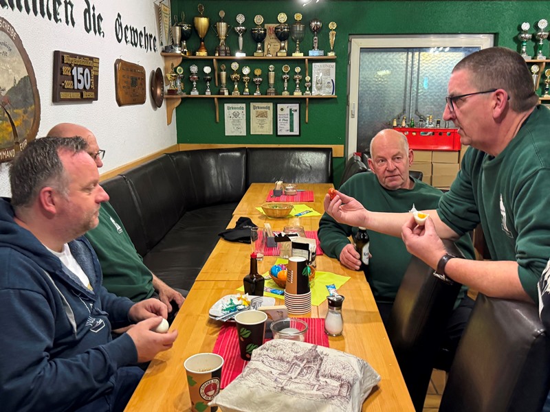 Nach alter Tradition fand auch in diesem Jahr am Palmsonntag das Ostereierschießen der Zwoten statt. Am Ende konnte sich Achim Mielke in einem harten Stechen mit einer perfekten Zehn gegen Matthias durchsetzen und ihn als Eierkönig ablösen!